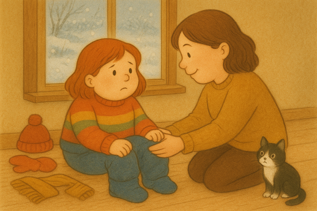 Frederike zog langsam ihre Schneehose an.