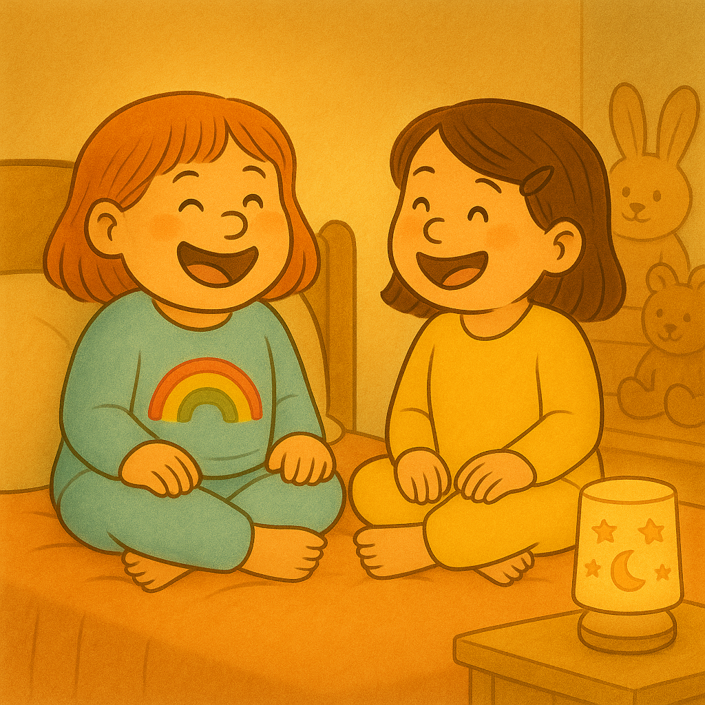 „Das wird toll!“, rief Gabi fröhlich und sprang aufs Bett. „Wir dürfen noch lesen, bis Mama das Licht ausmacht!“